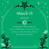 Daily messages are tailored to the magickal frequencies of the weekday and include wisdom from gods and goddesses sacred to that day as well as tarot insights and witchy inspiration from Morinna, the witch who rules over the year.